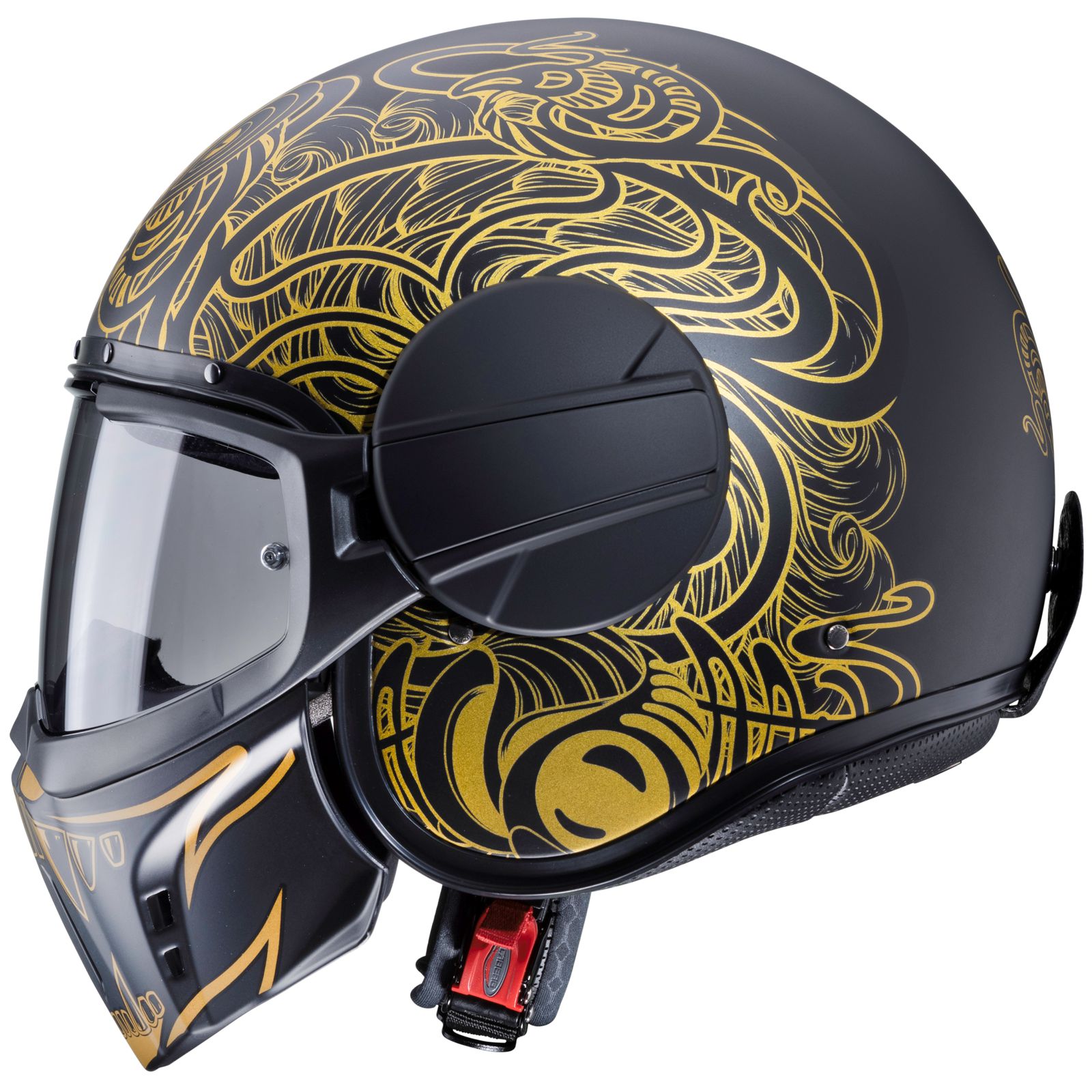 El Caberg Ghost es un casco jet especial para todos los motoristas que quieren tener un aspecto especial y extraordinario. El aspecto y la forma agresivos se han combinado con la funcionalidad. El Ghost puede utilizarse en cuatro configuraciones diferentes.