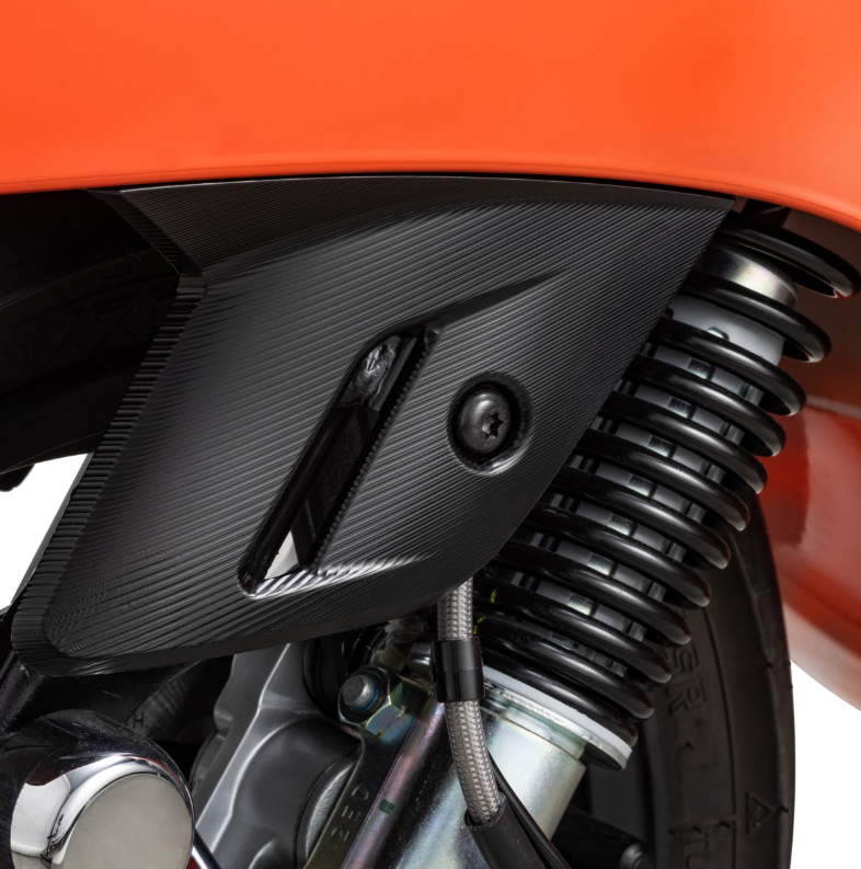 El carenado de horquilla de aluminio fresado CNC de SIP STYLE sustituye a la aburrida pieza de plástico del guardabarros delantero dela Vespa GTS HPE. La forma se basa en la pieza original, pero el aspecto y el tacto son de mucha mayor calidad. Paramontarlo, basta con retirar el carenado de horquilla estándar y sustituirlo por el carenado de horquilla SIP STYLE.