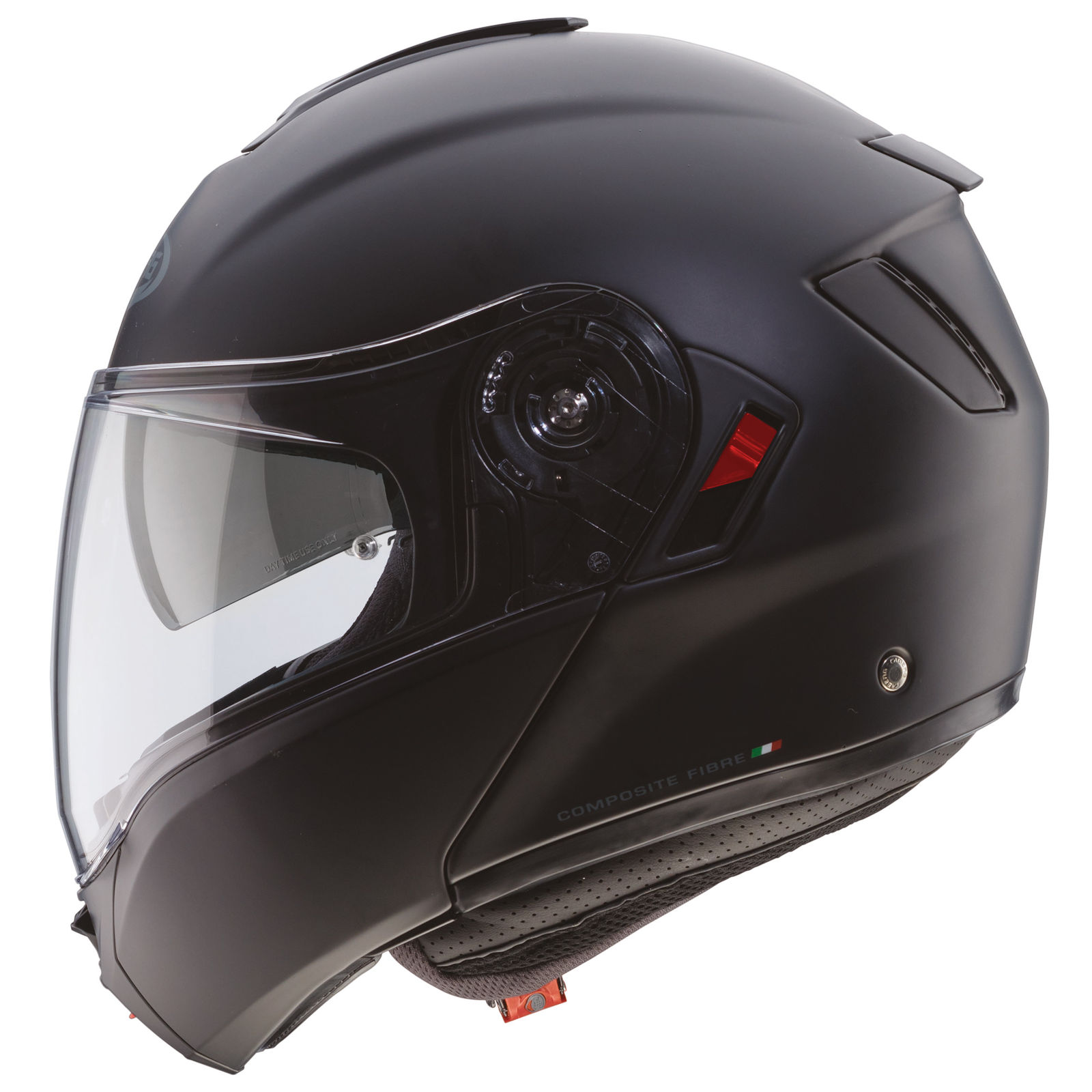 El casco abatible LEVO X de Caberg combina tecnología innovadora y diseño moderno para motoristas exigentes. La calota exterior está fabricada con material compuesto TRI (fibra de vidrio, carbono, Kevlar). Disponible en dos tamaños de calota (XS-M y L-XXL), ofrece una relación óptima entre el volumen de la calota y el tamaño de la cabeza. Gracias a la homologación P/J, cumple la norma ECE 22.06 para cascos integrales y jet. Dos entradas de aire delanteras y dos salidas traseras garantizan una excelente ventilación a través de los canales interiores de la calota, incluso en condiciones extremas. La "visera panorámica ultraancha" ofrece un campo de visión excepcionalmente amplio con una visión frontal de 82°. Equipado de serie con la lente antivaho Pinlock® 70 MaxVision y un visor solar integrado, el casco es fácil de manejar incluso con guantes. El interior desmontable y lavable está fabricado con tejidos transpirables e higienizados, mientras que las almohadillas de las mejillas facilitan el uso de gafas. El LEVO X es compatible con el sistema de comunicación inalámbrica CABERG PRO SPEAK EVO y otros sistemas universales. Cumple todos los requisitos de seguridad de la norma ECE 22.06, incluso con un sistema de comunicación integrado.