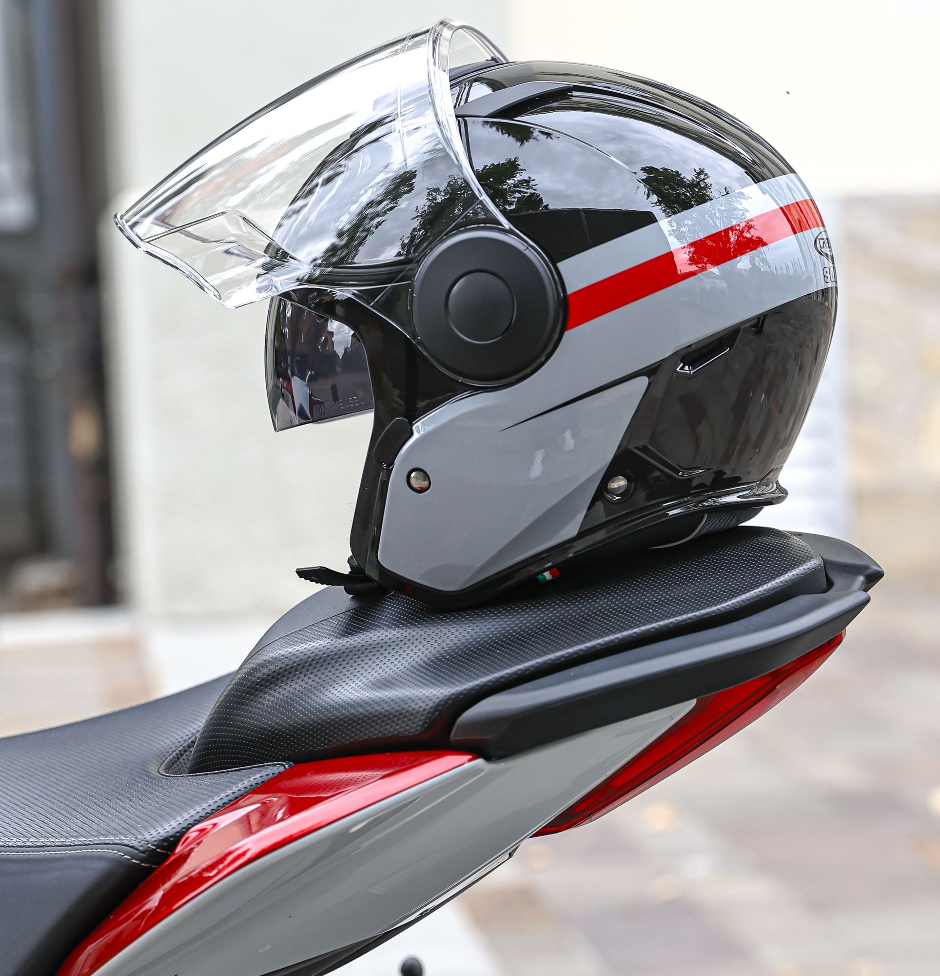 Información del producto "Casco Caberg Soho Zephyr negro/gris-rojo"