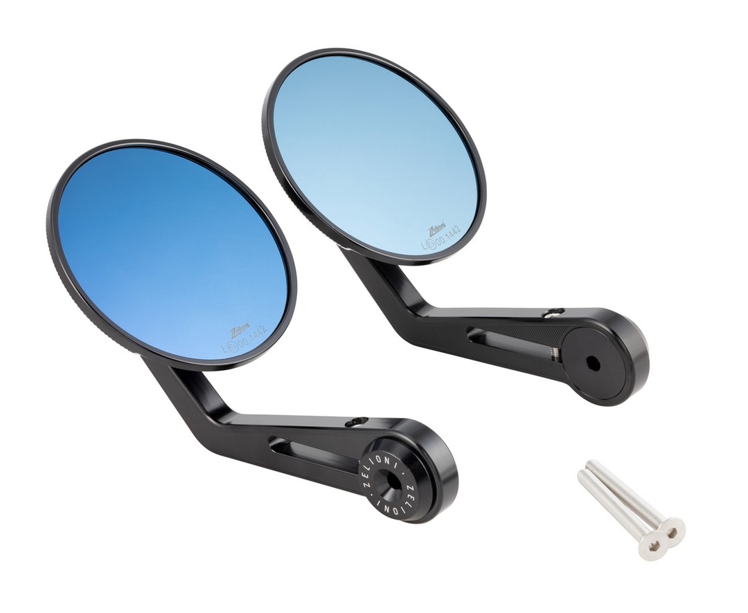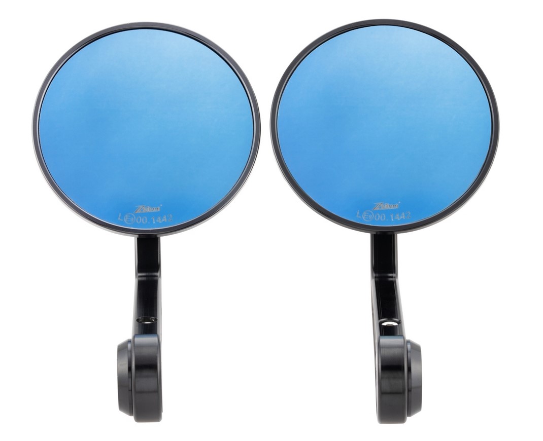 Kit de espejos en el extremo del manillar de ZELIONI. El kit contiene 2 espejos, incluido el material de montaje para fijarlos en el extremo del manillar.