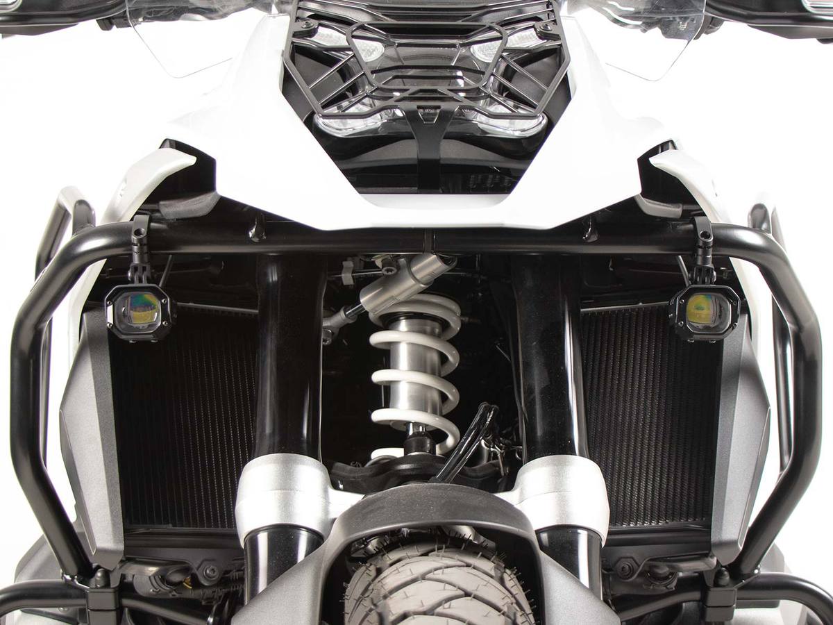 - Tenlo en cuenta: Aunque no hay ninguna restricción en cuanto al número de luces antiniebla permitidas, en la moto sólo puede funcionar una luz de carretera adicional, que debe estar acoplada a la luz de carretera del faro principal. El funcionamiento como luz antiniebla puede conmutarse con la luz de carretera o la de cruce. Por estos motivos, ofrecemos conjuntos con 2 faros como luces antiniebla, que se accionan con su propio interruptor. Los faros deben llevar el distintivo E para que se autorice su funcionamiento. Nuestros faros auxiliares LED tienen la correspondiente marca de homologación y, por tanto, no están sujetos a registro. Con los faros se incluyen instrucciones detalladas de montaje con diagrama de cableado. Todo está premontado, sin soldaduras. No es necesario cortar ningún cable. El interruptor de encendido/apagado está fijado a los herrajes.