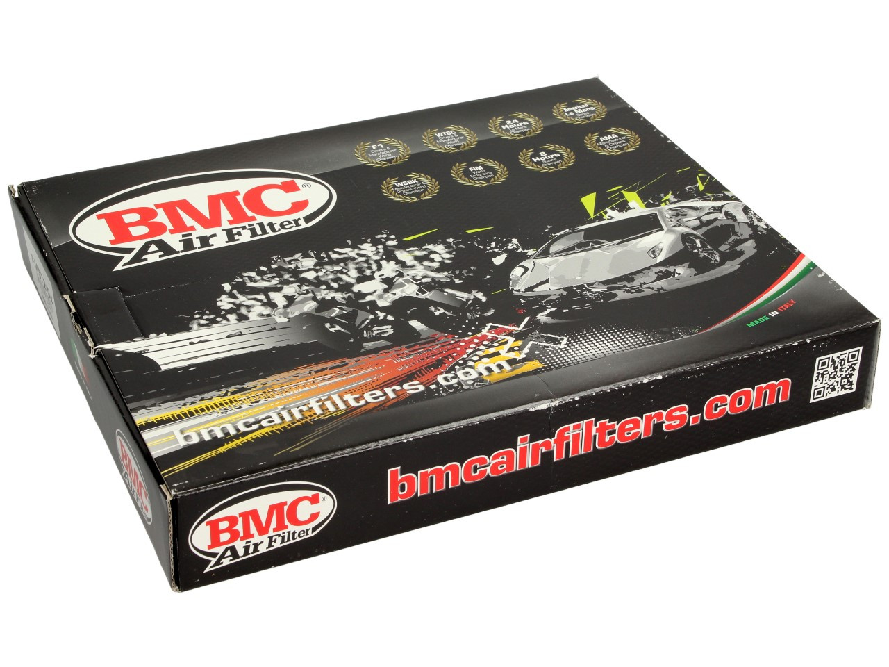 La construcción del marco del filtro de BMC se fabrica mediante un proceso único denominado "moldeado completo". Esto permite producir el llamativo filtro rojo en un solo proceso de moldeo, sin necesidad de pegar las esquinas, lo que provocaría roturas. El filtro de aire BMC tiene la menor cantidad de material de goma que sobresale (menos de 6 mm) que cualquier otro filtro del mercado, lo que permite una superficie de filtrado máxima.