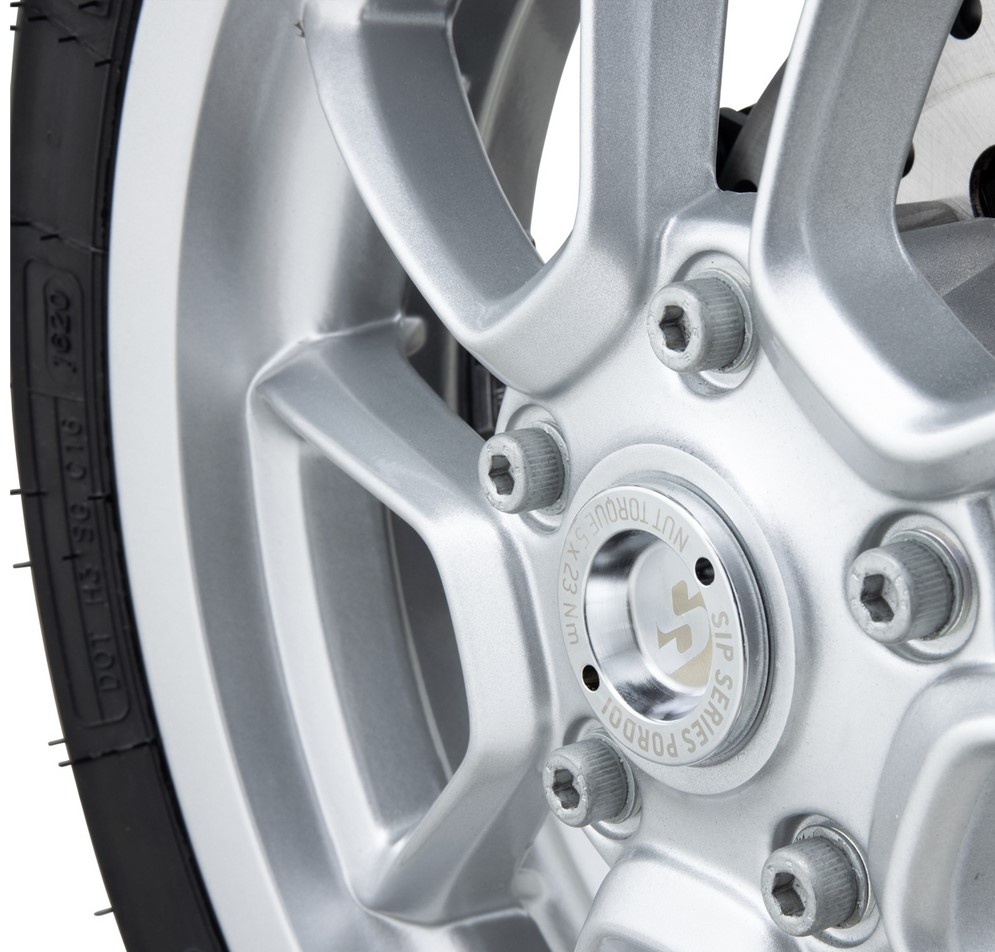 En la rueda delantera se monta de serie una cubierta de chapa barata, las tapas fresadas por CNC de los accesorios son cuestión de gustos y a veces tienen un precio excesivo. Elguardapolvo del SIP está fabricado por CNC en aluminio de alta calidad y está anodizado en varios colores. Es muy fácil de colocar con la junta tórica adjunta, se pone en la llanta y ya está.