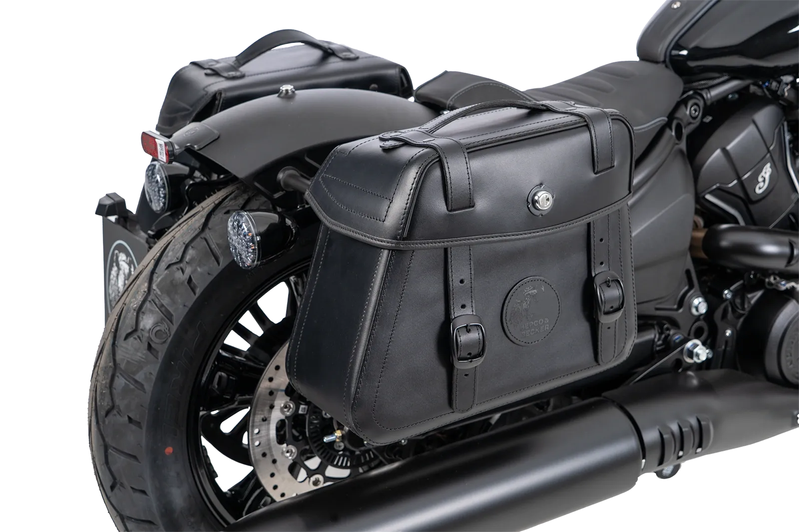 Las bolsas de cuero Hepco&Becker Rugged Cutout se fijan al portaequipajes lateral Rugged Cutout específico del modelo. Ambas bolsas tienen un panel trasero especialmente recortado para reducir la anchura total en modelos de moto especialmente seleccionados con un amortiguador ancho en voladizo . Las bolsas se fijan al portaequipajes mediante un cierre rápido situado en el interior de la bolsa. Si el portaequipajes y las bolsas se piden juntos, Hepco&Becker adaptará el cierre rápido al portaequipajes correspondiente y lo montará en la bolsa.