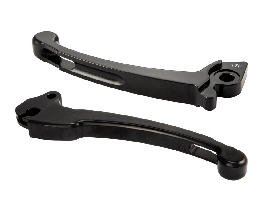 Las manetasdeportivas fabricadas con CNC son ideales para los pilotos deportivos y ambiciosos, y no sólo por su aspecto.La longitud de las manetas es tal que tienen la misma anchura en ambos lados, incluso cuando se utiliza un cilindro de freno hidráulico. Las manetas tienen un punto de rotura predeterminado en el extremo. Esto es para evitar que se rompan en caso de caída. Esto significa que el scooter puede seguir funcionando después de un accidente leve. Las palancas de freno o embrague de colores a juego están disponibles por separado. Para los modelos con freno de disco totalmente hidráulico, comprueba el cilindro principal de freno antes de hacer el pedido (HENGTONG o GRIMECA). Se suministra por piezas.