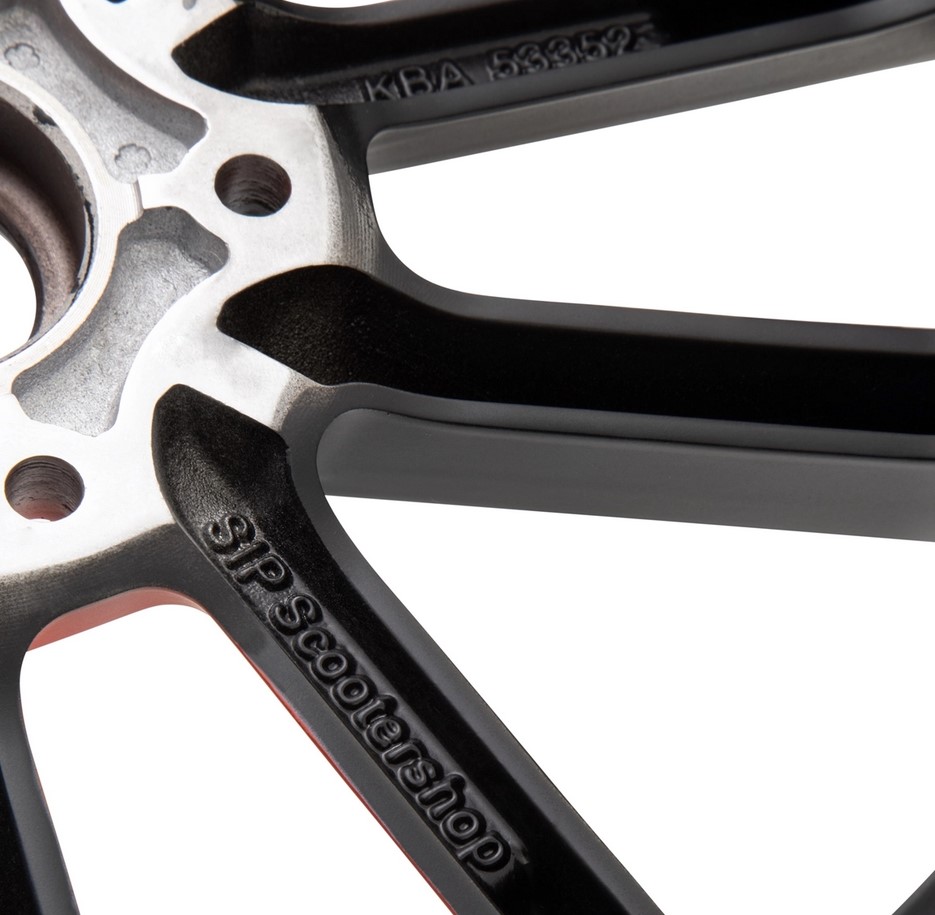 Primera llanta de 13" existente que se puede utilizar en el GTS sin problemas con el ABE. Se acabaron las zonas grises legales, se acabaron las discusiones con los inspectores de la TÜV, se colocan las llantas y se completa la conversión legal a 13". También está homologado con un neumático de 140 de ancho en la rueda trasera - en lugar del neumático estándar de 130, ahora se puede montar legalmente un neumático de tamaño 140/60-13" en la parte trasera. Las propias llantas se fabrican de acuerdo con las directrices de la ETRTO (Organización Técnica Europea de Neumáticos y Llantas), la especificación de la industria para la producción de llantas y neumáticos.