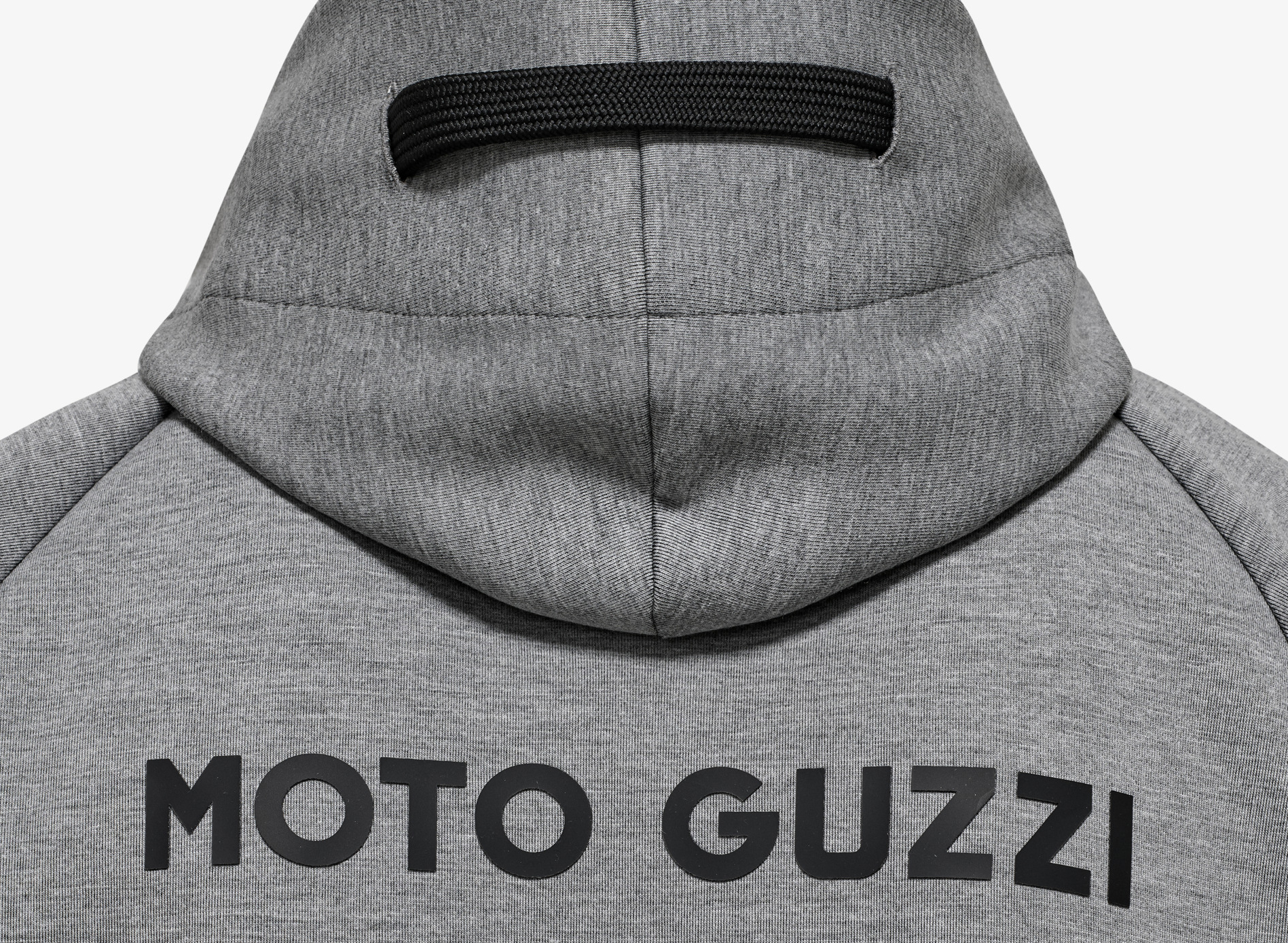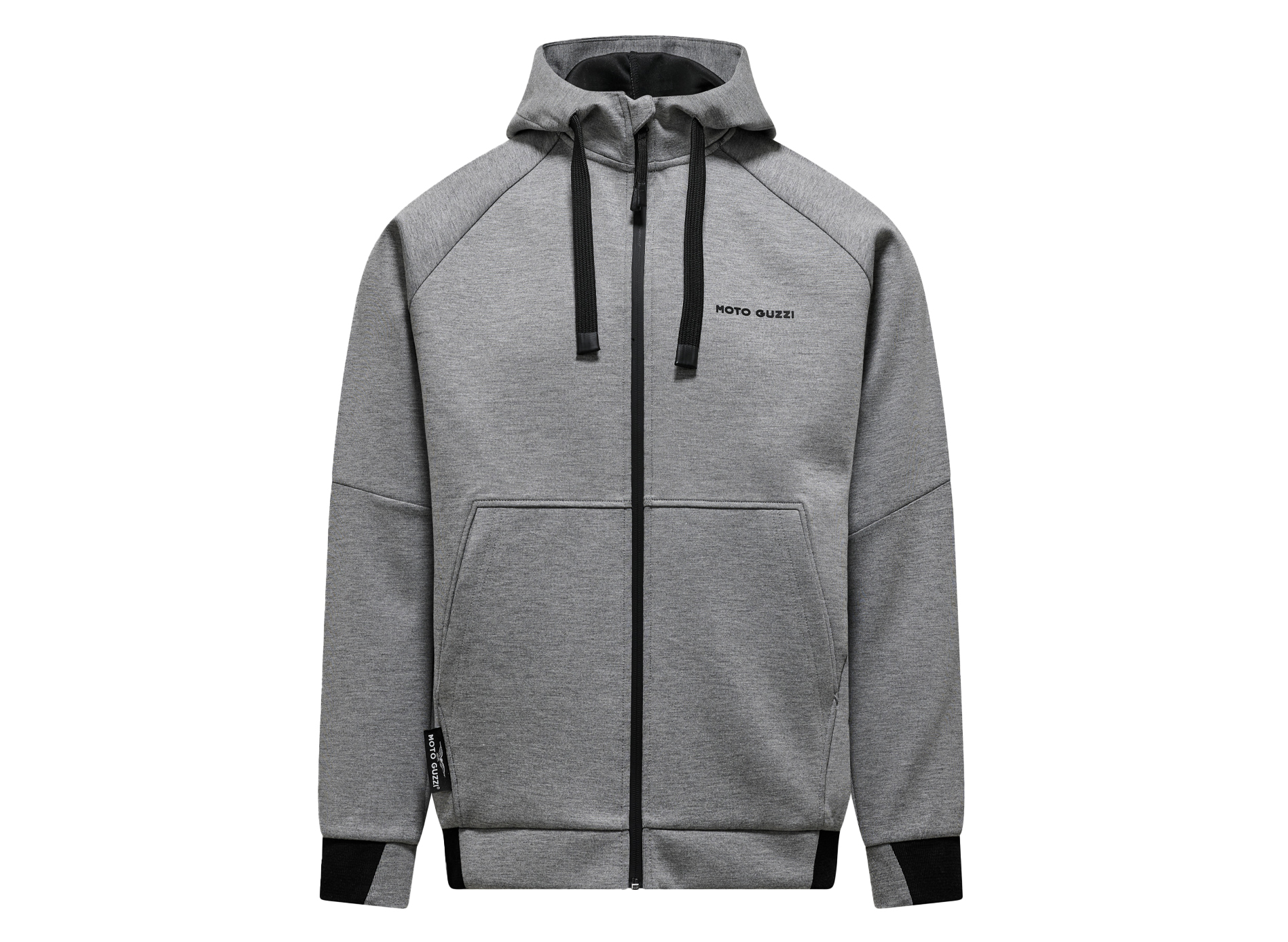 Sudadera confeccionada en tejido de submarinismo con estampado MOTO GUZZI engomado en el pecho y la espalda. Con capucha ajustable, cremallera entera y bolsillos canguro. Mangas raglán, una reinterpretación deportiva de un clásico de la moda masculina. El logotipo MOTO GUZZI cosido en el lateral añade un toque distintivo, mientras que los puños de doble tejido en contraste en las mangas y el dobladillo garantizan estilo y comodidad.