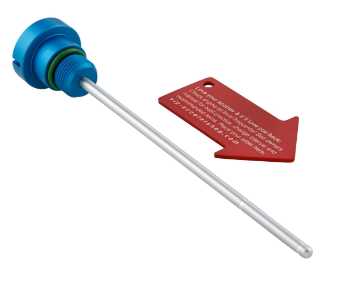 Die Öleinfüllschraube / Messstab SIP PORDOI für das Motoröl wird aus hochwertigem Aluminium CNC gefräst. Durch das schlichte Design sehen die Öleinfüllschrauben an jedem Fahrzeug schön aus und fügen sich gut in das Gesamtbild der Vespa ein. Am Messstab ist die Skala entsprechend der originalen Einfüllschrauben ausgerichtet, der passende Dichtring ist bereits angebracht. Oft werden die serienmäßigen Einfüllschrauben bei parkenden Fahrzeugen entwendet. Um Unbefugten die Arbeit zu erschweren, hat SIP an ein kleines Sicherheitsplus gedacht und liefert ein spezielles Montage-Tool mit den Einfüllschrauben welches praktischer Weise auch als Schlüsselanhänger genutzt werden kann.