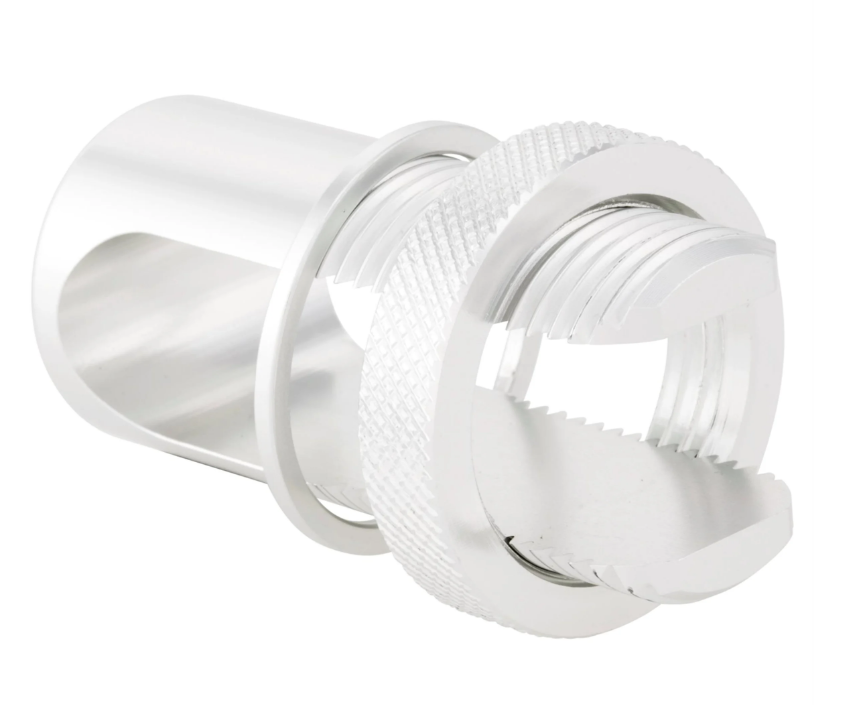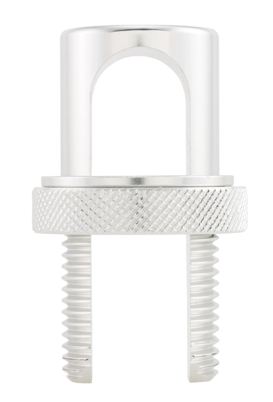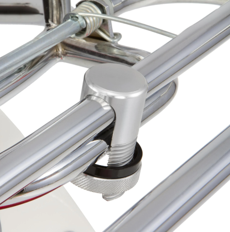 Práctico clip de sujeción   para todos los portaequipajes. Sujeta firmemente el soporte plegable y evita que se pliegue involuntariamente. Se fija mediante un tornillo moleteado. Adecuado para todos los portaequipajes con un diámetro de tubo de hasta Ø=18,55 mm.