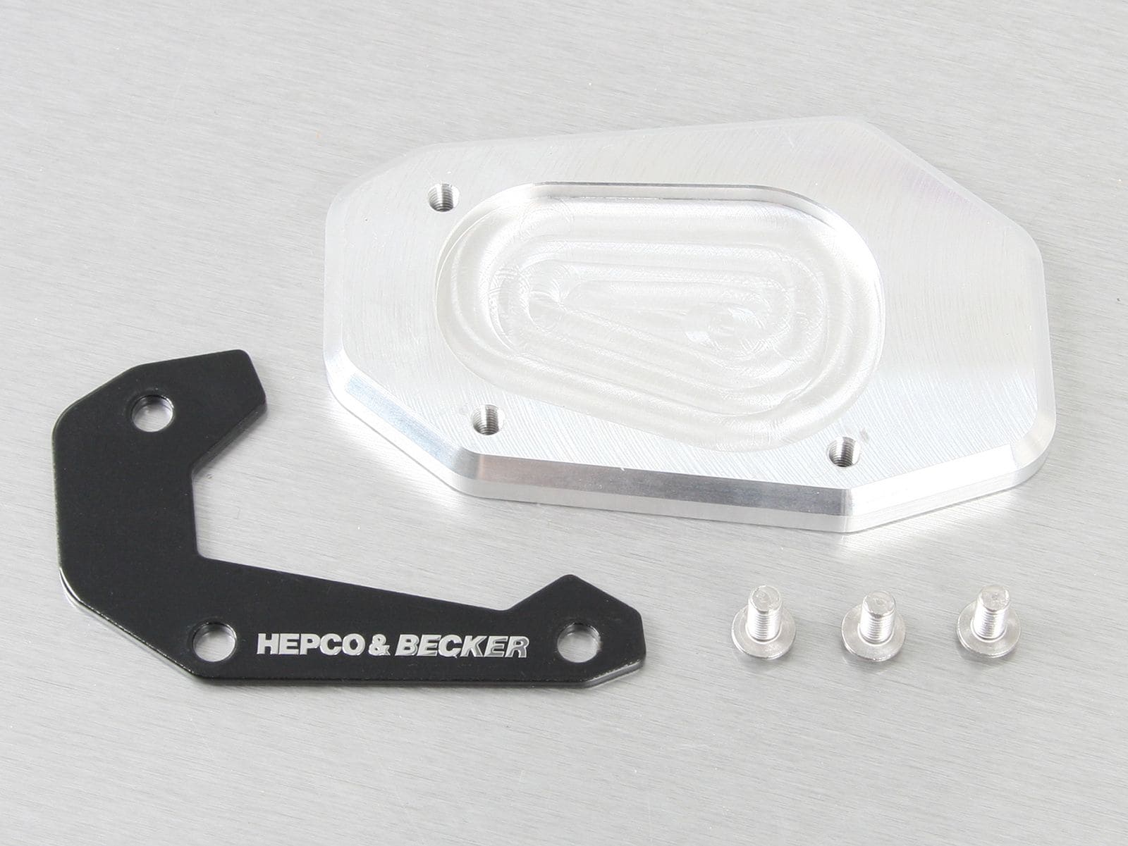 Especialmente cuando está totalmente cargada o en superficies no asfaltadas, la moto puede hundirse y volcar fácilmente sobre el caballete lateral. Para liberar a tu moto de este peligro, te recomendamos una placa de caballete lateral moldeada, específica para cada modelo, de Hepco & Becker. Al ampliar el soporte del caballete lateral hasta aproximadamente el doble de superficie en comparación con el caballete original, tu moto queda perfectamente protegida de percances al aparcar.
