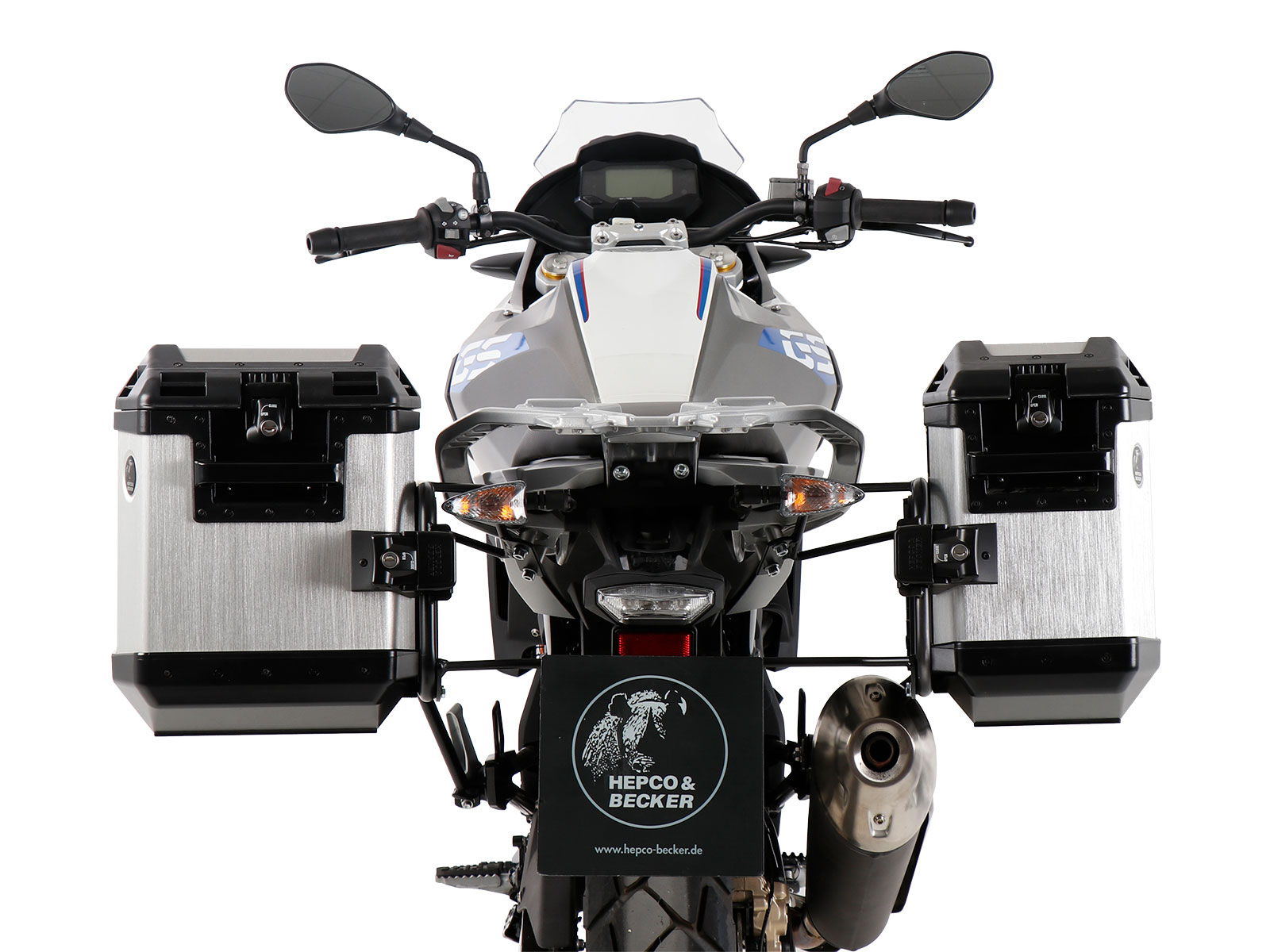 Los portamaletas laterales de Hepco & Becker suelen poder combinarse sin problemas con nuestros portamaletas traseros. Consulta las instrucciones de montaje y la información específica del modelo.