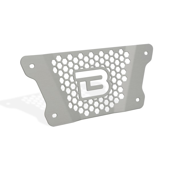 El protector de motor BARRACUDA Engine Cover Protection está fabricado en aluminio anodizado plateado. La rejilla hexagonal especial de 2 mm de grosor está especialmente diseñada para proteger el colector de escape.
