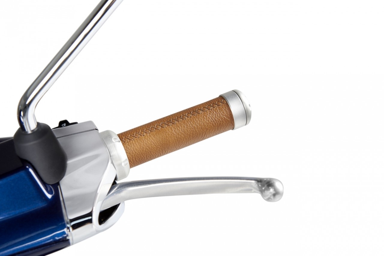 La Luxury-Line se compone de los mejores acabados en la más alta forma de estilo y calidad. Completamente diseñada y fabricada a mano en Italia, completa el aspecto de tu Vespa de una forma muy exclusiva. Empuñaduras de cuero auténtico con contrapesos cromados en los extremos del manillar. Mejora el tacto y la sensación natural del manillar mientras conduces tu Vespa, ¡pero sin comprometer la seguridad!