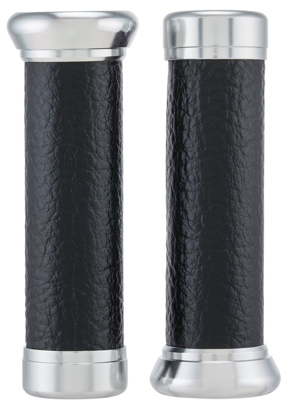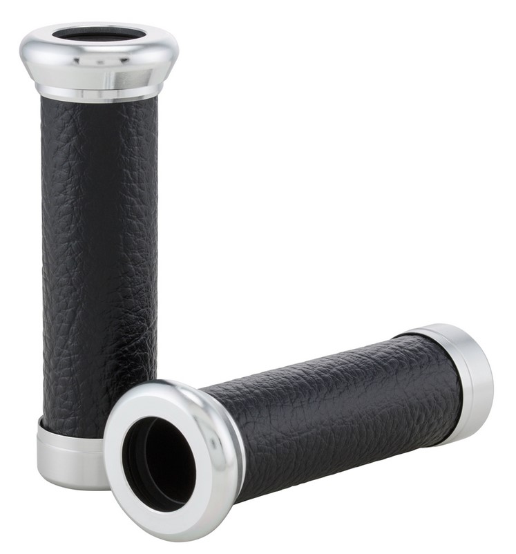 Los puños SIP de aspecto retro vienen con una superficie de agarre de cuero artificial y manguitos de aluminio en los extremos. Los puños no sólo tienen un aspecto elegante, sino que también combinan con los colores de muchos de los asientos populares de Vespa.