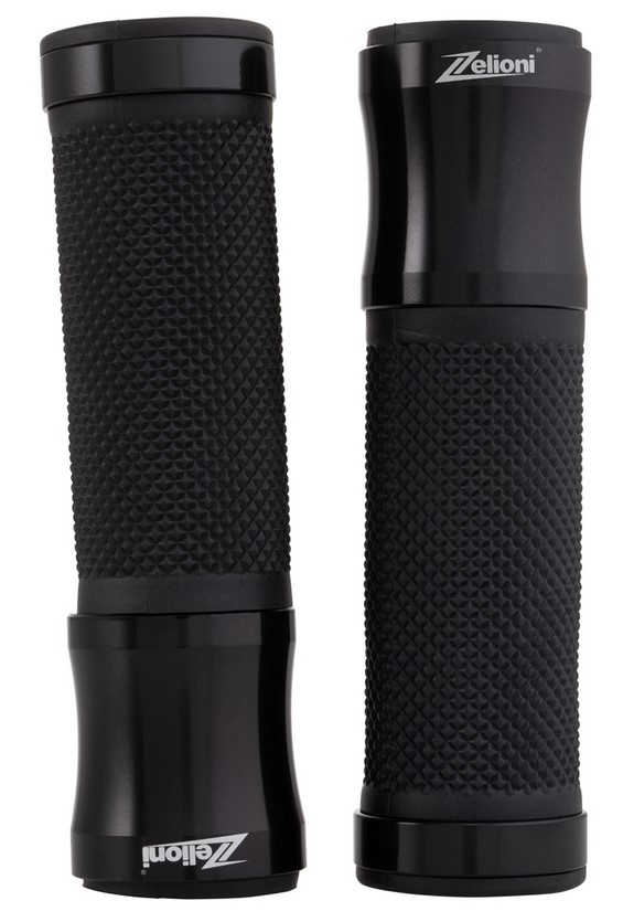Mango ergonómico con palma de goma. Tapas de aluminio con el logotipo de ZELIONI grabado con láser. Extremos abiertos para el montaje de contrapesos/espejos en los extremos de la barra.