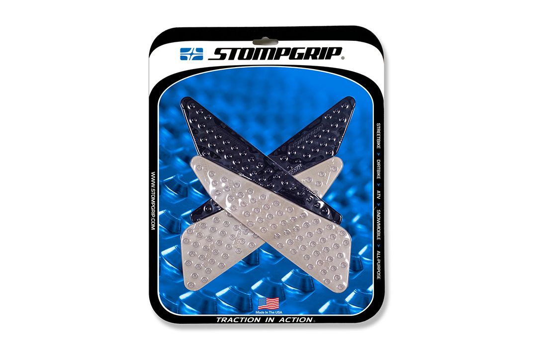 Las almohadillas de tracción Stompgrip se adaptan individualmente a cada moto. Si no dispones de una almohadilla Stompgrip adecuada, utiliza las almohadillas universales Stompgrip o córtalas a la medida que necesites. Las almohadillas están disponibles en negro o transparente.