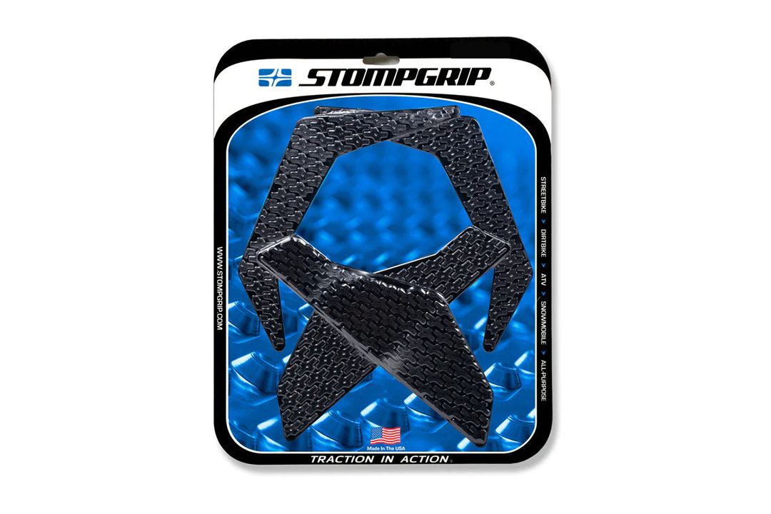 Las almohadillas de tracción Stompgrip se adaptan individualmente a cada moto. Si no dispones de una almohadilla Stompgrip adecuada, utiliza las almohadillas universales Stompgrip o córtalas a la medida que necesites. Las almohadillas están disponibles en negro o transparente.