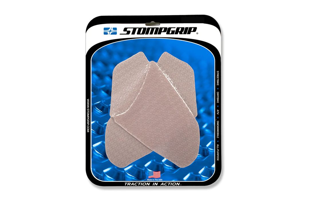 Las almohadillas de tracción Stompgrip se adaptan individualmente a cada moto. Si no dispones de una almohadilla Stompgrip adecuada, utiliza las almohadillas universales Stompgrip o córtalas a la medida que necesites. Las almohadillas están disponibles en negro o transparente.