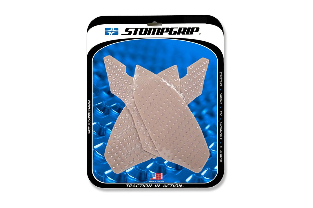 Las almohadillas de tracción Stompgrip se adaptan individualmente a cada moto. Si no dispones de una almohadilla Stompgrip adecuada, utiliza las almohadillas universales Stompgrip o córtalas a la medida que necesites. Las almohadillas están disponibles en negro o transparente.