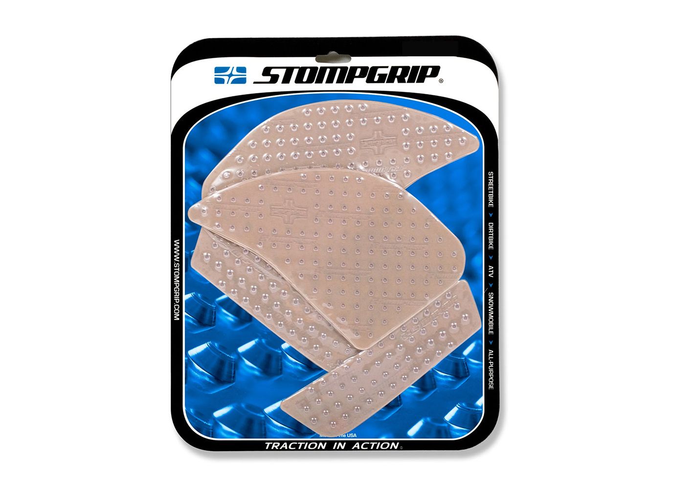 Las almohadillas de tracción Stompgrip se adaptan individualmente a cada moto. Si no dispones de una almohadilla Stompgrip adecuada, utiliza las almohadillas universales Stompgrip o córtalas a la medida que necesites. Las almohadillas están disponibles en negro o transparente.