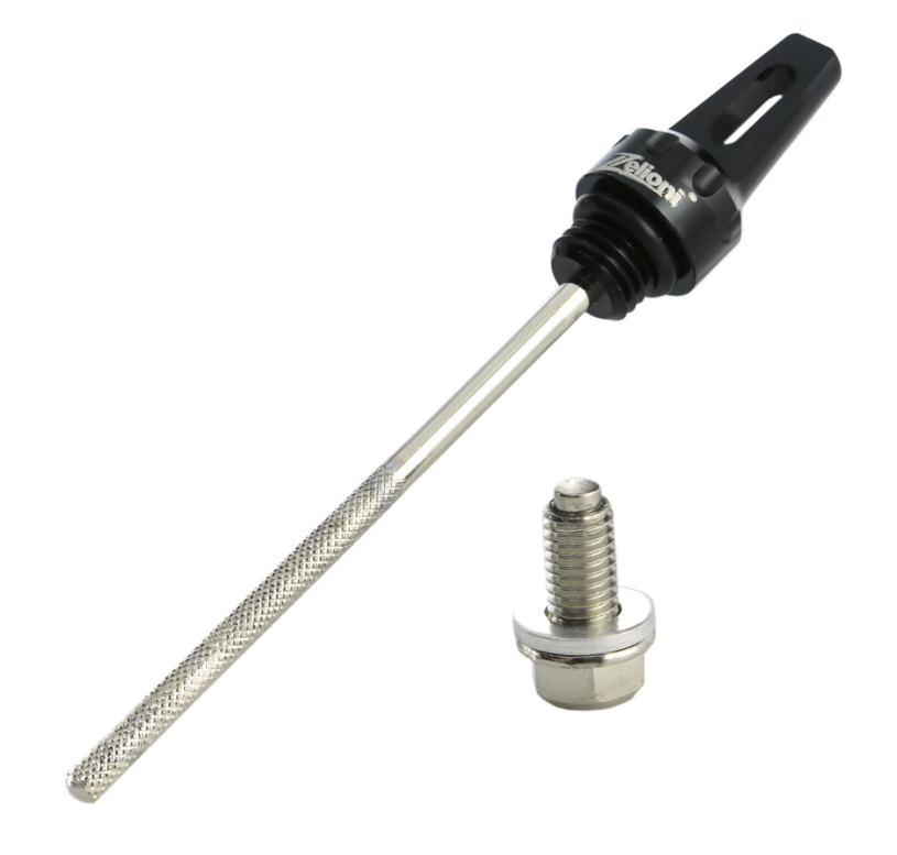 Kit de tornillos ZELIONI, compuesto por 1x sin imán (varilla de nivel de aceite) + 1x con imán (tapón de vaciado de aceite). El tapón magnético de vaciado de aceite filtra de forma fiable los restos metálicos del aceite de la transmisión.